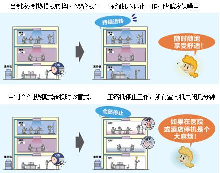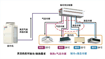 ●雙管式“冷暖同步”多聯(lián)空調(diào)系統(tǒng),可以實現(xiàn)一套系統(tǒng)制冷同時制熱;