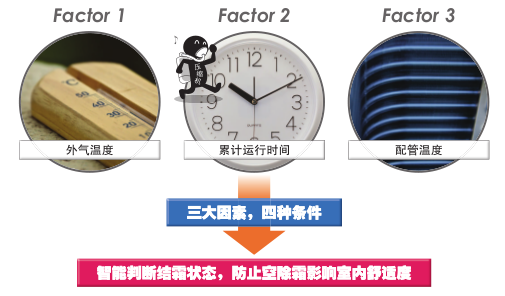 ●智能判斷結(jié)霜狀態(tài),減少不必要的除霜,確保室內(nèi)舒適度,提升制熱性能;