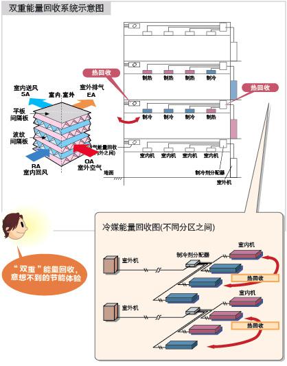 在建筑內(nèi)同時應(yīng)用全熱交換器Lossnay的情況下,借助其超高效的特殊紙質(zhì)全熱交換核芯,整個空調(diào)通風(fēng)系統(tǒng)可以實現(xiàn)從冷媒到空氣的“雙重”能量回收,達成無可比擬的運行效率。
