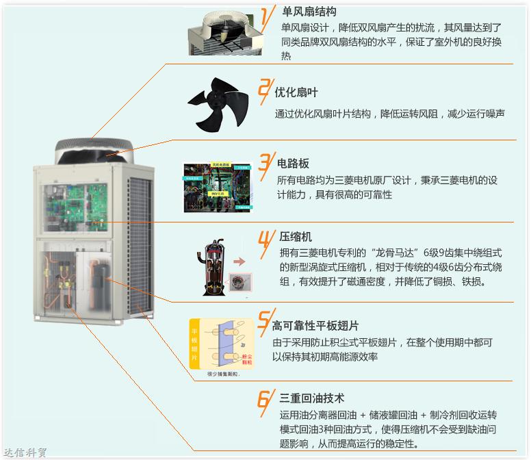 制冷制熱強勁:高效換熱的內(nèi)螺紋銅管及高效鋁箔翅片設(shè)計、智能除霜模式結(jié)合先進的控制電路,保證機組強勁的制熱效果。