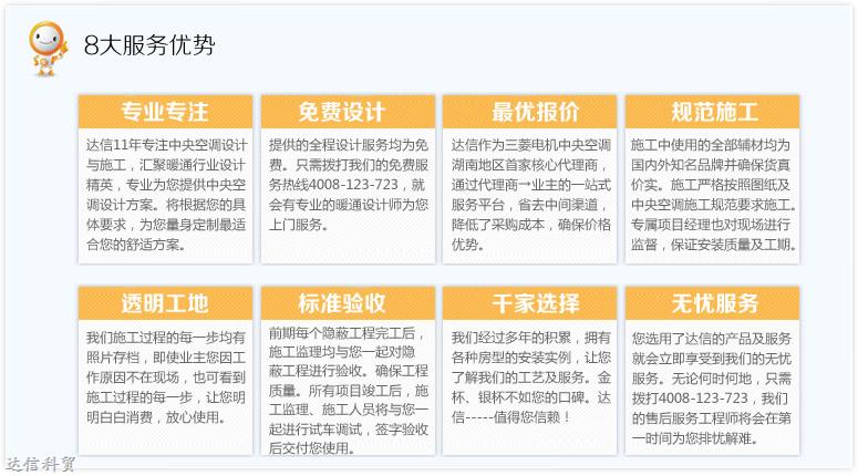 ![]() | 中央空調(diào)系統(tǒng)保修一年 主要安裝配件輔材保修三年 中央空調(diào)整機(jī)保修兩年 中央空調(diào)主機(jī)壓縮機(jī)保修三年 售后服務(wù)響應(yīng)時(shí)間市內(nèi)8小時(shí)內(nèi)到位 |